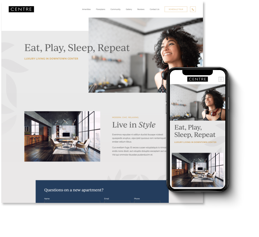 This website design is perfect for Class A properties that have great photography. The design atheistic is minimal and carries lots of white space with bold colors. This website that have great photography. The design atheistic is minimal and carries lots of white space with bold colors.